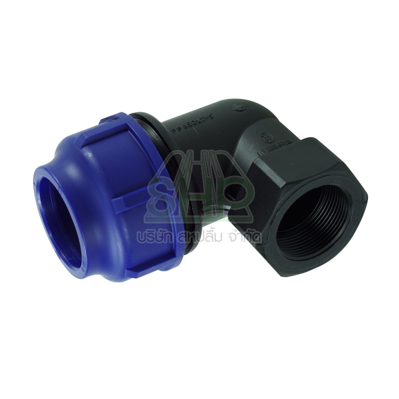 -ข้องอเกลียวในพีอี ฝั่งที่เป็นหัวต่อสำหรับใส่กับท่อพีอี ฝั่งที่เป็นเกลียวสามารถต่อกับเกลียวนอกที่เป็นพีอี PVC หรือเหล็ก