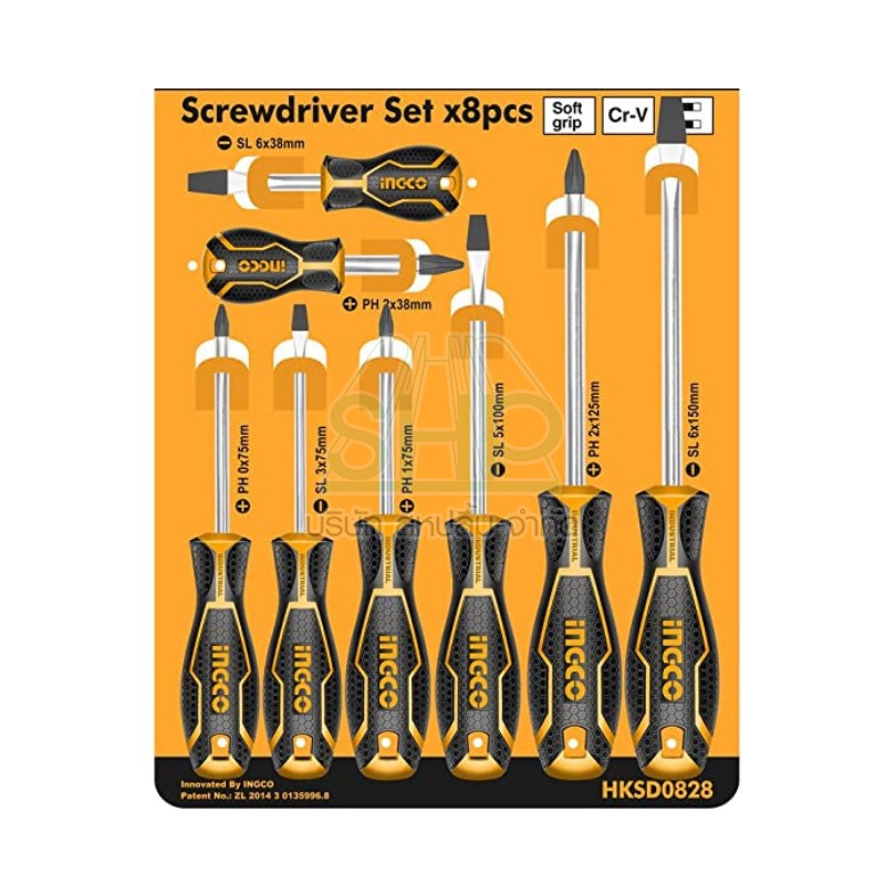 INGCO อิงโก้ ไขควงอเนกประสงค์ ปากแบน + ปากแฉก8ตัวชุด รุ่น HKSD0828